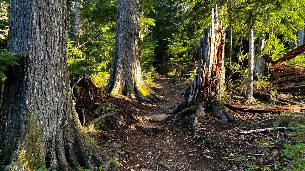 What reason would someone have to rise at 5am on a Sunday morning if not to embrace the beauty of a gorgeous Pacific Northwest sunrise? This week, I had the motivation to travel to the peninsula for a hike in the breathtaking Olympic National Forest, and I was eager to arrive early to bask in the serene silence. My lower back felt a little tight before starting the hike, which had an elevation gain of over 1,000 feet, but I pushed on as I was excited for the adventure ahead! Today’s hike was at Upper Big Creek—a trail that spans about 5 miles and delivers a nice early challenge with most of the elevation gain during the first two miles. Including a few trail detours, some planned and others spontaneous, I settled with about 6 miles and a respectable 1,181 ft elevation gain.