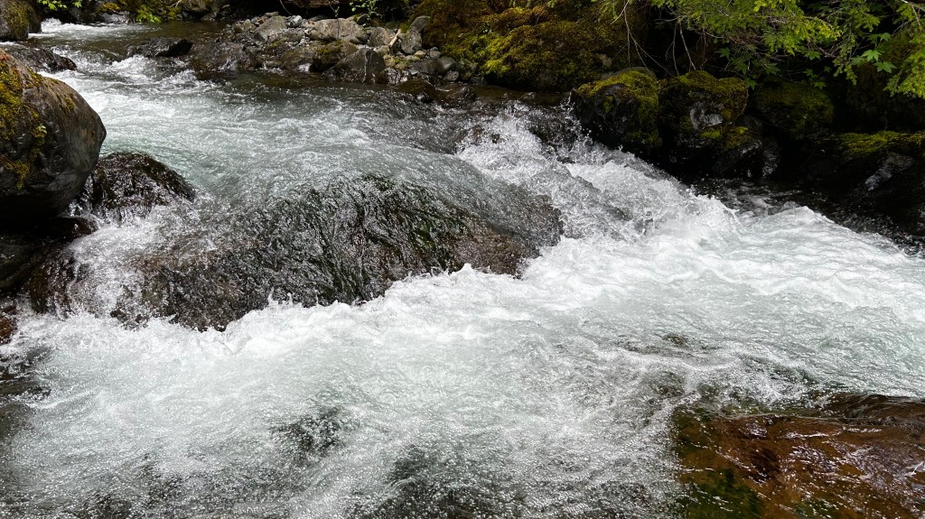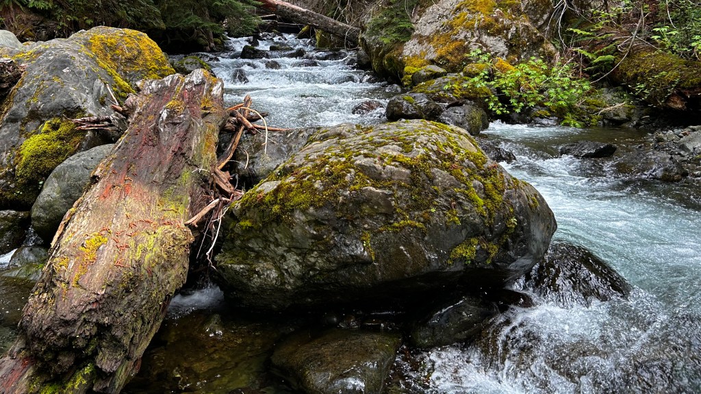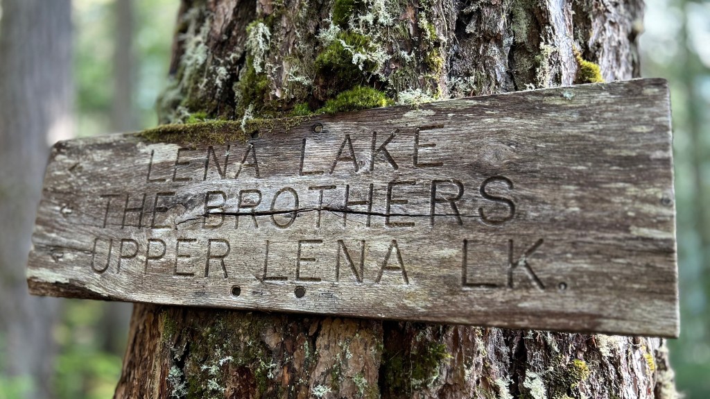 Fueled by confidence from my last waypoint, I felt optimistic about my search for a new trail. The Olympic National Forest resonates with my spirit. I rise early, embarking on a serene two-hour drive to the Lower Lena Lake Trailhead, located off HWY 101 on N Hamma Hamma Rd (NF-25). It was a delightful early morning journey through Olympia on the way to the peninsula. This drive, much like my previous ones, was a meditative experience, filled with gratitude accompanied by the soundtrack of Kelly’s playlist. As you’ll discover, my gratitude at this waypoint relates to the ‘thought’ I brought on the trail—an exploration into the role of the mind, heart, and soul, and how it can manifest into something ‘real.’ I arrived at the Lena Lake/Brothers Trailhead by 7 AM, ready for this exciting 8.5 mile out-and-back hike with a 1,693′ elevation gain, which gave me about 4.5 hours on the trail.