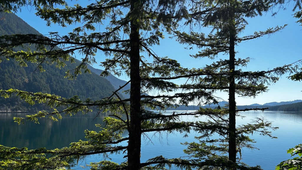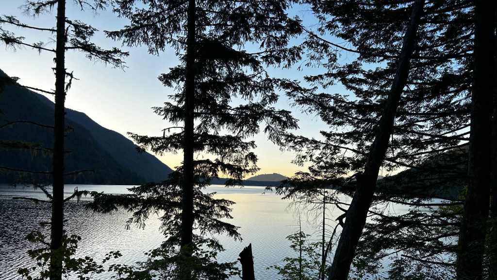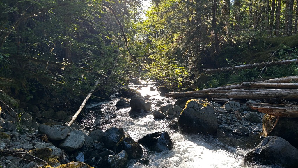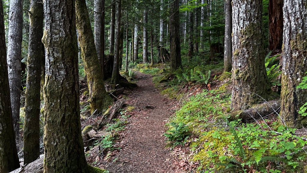Today, I set off for the Olympic National Forest, eager to tackle the Dry Creek Trail near Hoodsport, WA. The drive was mostly in darkness, my headlights cutting through the early morning haze, as I anticipated the sunrise behind the mountains surrounding Lake Cushman. I made the most of my quiet time on the road, letting music fill the space and my mind wander through thoughts of gratitude for the Pacific Northwest. And, preparing for my “trail thought” for the day: “Why do I do all of this?” The hiking, the journaling—what’s the deeper journey behind it all?