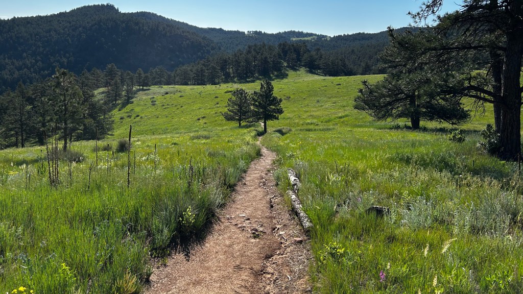 At the turn, I decided to take a little detour up the Hummingbird Switchback trail. It was a short but steep climb that led me to the reservoir, a (not so little) gem hidden high in the landscape. On my way back, I veered onto Sleepy Lion Trail. The trail meandered, in its ascents and descents, through a beautiful blend of boulders and trees, opening up to a vibrant meadow where tall grass and wildflowers swayed in the gentle breeze, painting the scene with splashes of color against multiple shades of green. The views were picturesque, and the sound of the water was gentle as I made my way back down the mountain. After nearly three hours, I found my way back to the trailhead. It had been a beautiful morning, bathed in clear blue skies—just like life, filled with twists, turns, and moments of surprise and delight along the way.