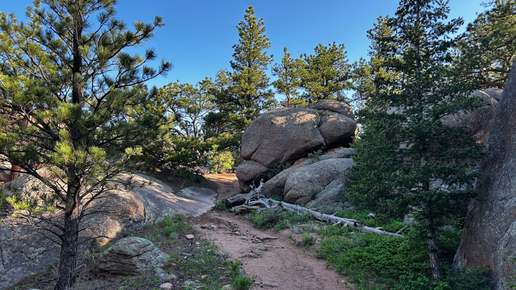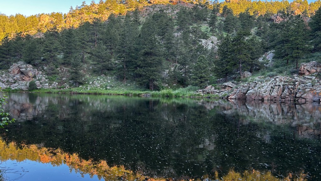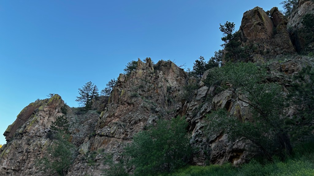 I laced up my hiking shoes at the Button Rock Dam trailhead just as dawn was breaking, around 6am. Right away, I could feel the unique charm of this place—a blend of the lush greens reminiscent of Washington State and the rugged beauty of Arizona. Colorado feels like the best of both landscapes. I started my adventure on the Longmont Dam Road Loop, which tracked the river for about two miles, passing Button Rock Dam on the way. The path consisted of a fine, reddish dirt that crunched softly underfoot, and it felt like the morning was mine alone, accompanied only by the soothing rush of the river and the distant hum of the dam which echoed through the canyon.