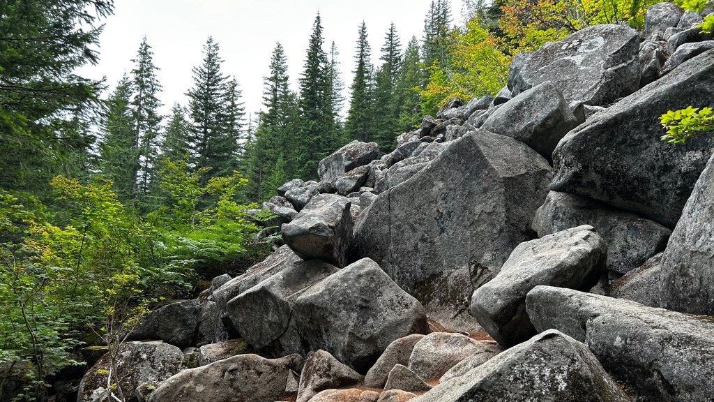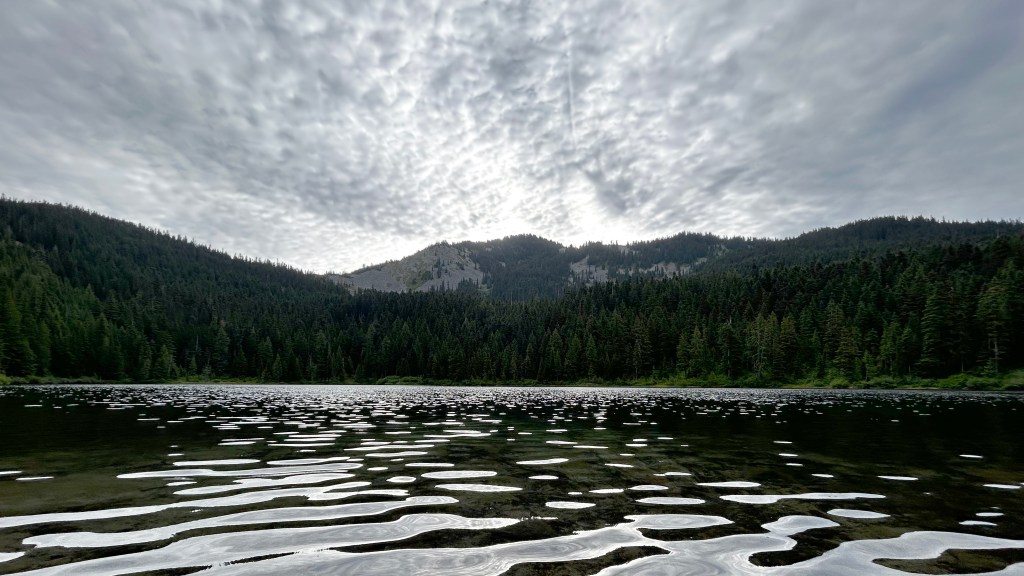 As the clock struck four, I slipped out the door, greeted by the gentle hush of the early morning. The tranquility of the next ninety minutes on the road to Talapus and Olallie Lakes offered a comforting prelude to the adventure that awaited me. The serene drive allowed my mind to wander through a landscape of gratitude, with the last few miles being punctuated by the occasional jolt from potholes that felt more like a circus ride than a journey. This week, I had the opportunity to reconnect with extended family at a celebration of life, which was a great reminder of the bonds that connect us—the focus of my gratitude today. As I reached the trailhead at the Alpine Lakes Wilderness, the sky was just beginning to embrace dawn’s light through the soft morning overcast.