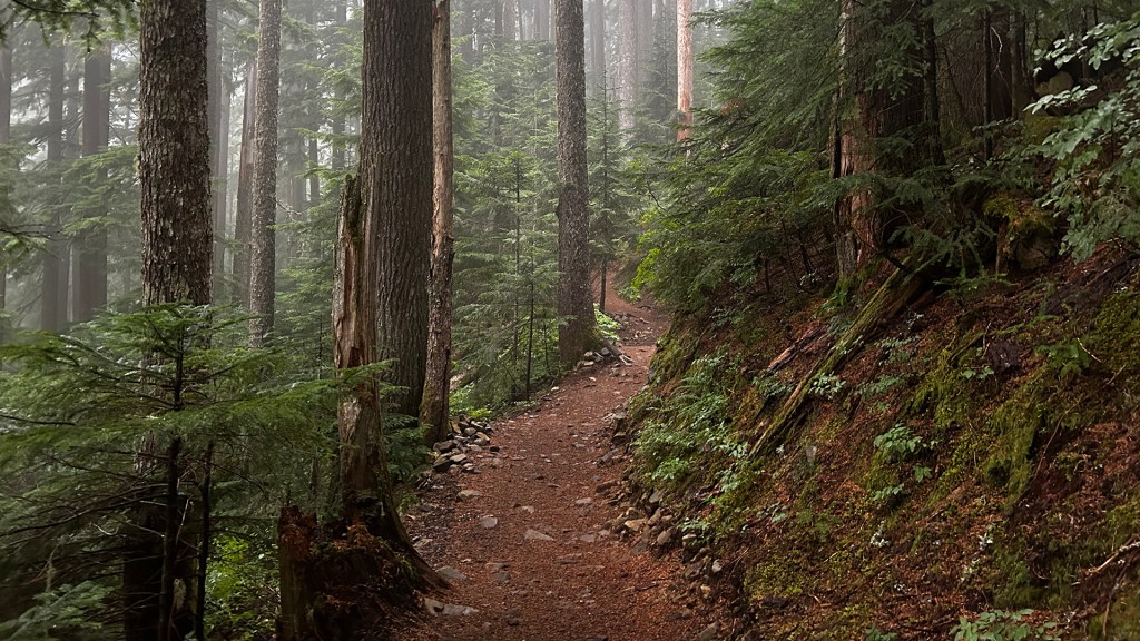 When I began my descent, it felt like a delicate balance between caution and eagerness. I found myself holding back, aware of the risk of a tumble—a gentle reminder that rushing can bring unforeseen challenges, both on the trail and in our everyday lives. I navigated the rocky path, cherishing each moment, each breath, as the world around me gradually unveiled its beauty, even under the persistent drizzle. While the sweeping views may have been out of reach, this quintessential Pacific Northwest day truly deserves its own appreciation. The mist, the joyful antics of the playful dogs, and the gentle rhythm of my steps all came together to create a meaningful experience. As I wrapped up my hike, I carried with me not only a sense of accomplishment but also gratitude for the journey itself. Every hike serves as a reminder of the beauty found in both the journey and the destination.