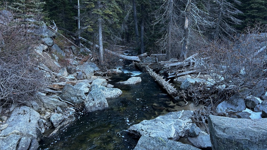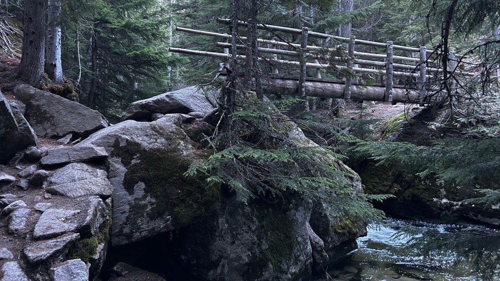 As I pressed on, the landscape began to shift, opening up to breathtaking views that left me momentarily speechless. Sun-kissed high peaks above, illuminating the breathtaking summits of surrounding mountains, and rocky boulders scattered across the trail, remnants of ancient geological forces. Crossing a charming bridge, I paused to admire the glimmering traces of snow that hinted at winter’s approach. The trees thinned, revealing glimpses of Colchuck Lake ahead, its surface a stunning hue of green, beginning to freeze over, Little Colchuck had already frozen over. Fatigue began to settle in as I turned toward the descent, but the challenge of navigating the steep path only deepened my appreciation for the experience. I reflected on how the hardest journeys often lead to the most extraordinary destinations, and today was a perfect reminder of that truth.