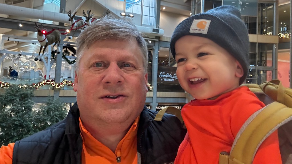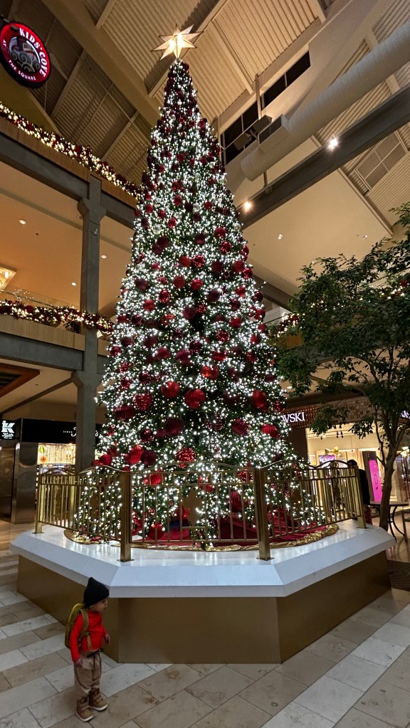 As we wandered along the path, I began to share stories from our family history, tales that would someday connect Ronin to his roots. I told him about our winter trips to Bellevue Square, a holiday pilgrimage filled with excitement and chaos. I can still picture Kelly, her eyes filled with a blend of joy and exhaustion, as we navigated the bustling crowds to get in line for Santa (years that preceded the brilliant idea of booking a time). The laughter, and limited patience of the kids, mingled with the holiday music, creating a chaotic symphony of joy. I recounted how we’d wait in line for hours, the anticipation palpable, while Kelly kept the kids entertained with stories and games (I was on restroom run duties). “Did you know, buddy,” I said, pausing to see if I would get a reaction, “we used to brave the chaos just to see Santa? Your grandma was a pro at making those moments magical, no matter how wild it got.” I hoped he felt the warmth of those memories, even if he couldn’t fully grasp their significance just yet.