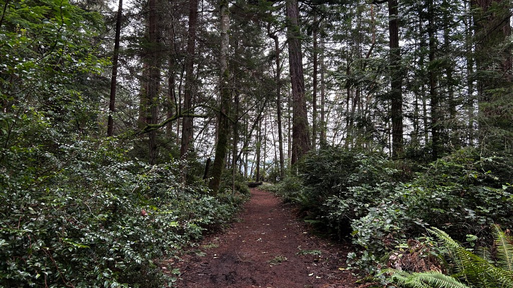 As the sun peeked over the cascades, I set out on the Outer Loop of Point Defiance Park, the air crisp and invigorating at 40 degrees. Despite the recent heavy rainfall that flooded much of Western Washington, the trail felt surprisingly vibrant. I could hear the songs of birds filling the forest, their melodies mingling with the distant chatter of the nearby zoo. The path was a blend of soft dirt interspersed with pine cones and the gentle padding of nettles beneath my feet. I exhaled and felt a calm as I began, a leisurely trek spurred by the beauty surrounding me. It was a morning that promised serenity, inviting me to explore every nook and cranny of this urban oasis, reminding me that nature’s beauty often lies just beyond our doorsteps—yes, near where the three little birds were pitched.