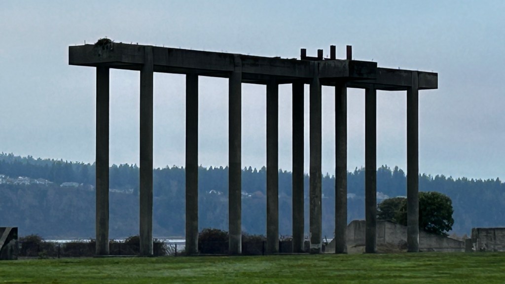 Today, I decided to get one more hike for the year at Chambers Bay, setting off just past noon, the air crisp and invigorating at 38°F. As I stepped onto the East Slope Trail, I could sense the sun trying to break through the lingering clouds, though they clung stubbornly to the horizon. The trail wound down, leading me toward Chambers Creek Trail, where the soft crunch of my footsteps mingled with the distant hum of machinery from the golf course maintenance crew. New Year’s Eve felt surprisingly quiet out here; the parking lot was nearly empty, and I relished the tranquility as I crossed a narrow bridge over the road, with cars zooming by—a stark reminder that connecting these trails was not for the faint of heart. The contrast between this serene escape and the bustling world just a breath away added a unique charm to my hike, making it feel like a hidden sanctuary amidst the busy hum of life.