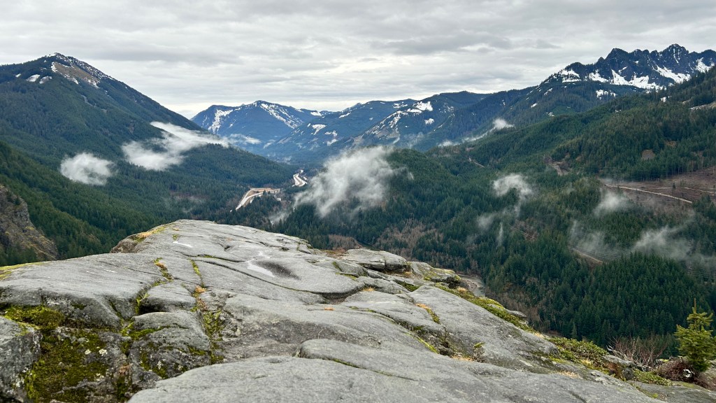 Reaching Dirty Harry’s Balcony felt like stepping into another world—a broad slab of stone hovering over the canyon, with I-90 winding far below like a ribbon on a map. The view unfolded before me, a breathtaking view of mountains veiled in mist, their majestic silhouettes standing guard over the valley. I engaged with a few hikers as we all witnessed the same solitude. We shared stories, favorite trails, and some equipment tips. As I turned to begin my descent, the trail now bathed in the gentle embrace of morning light, I carried with me the peace and wonder of the journey, eager to return to the world below, yet knowing I would forever hold this moment close to my heart.