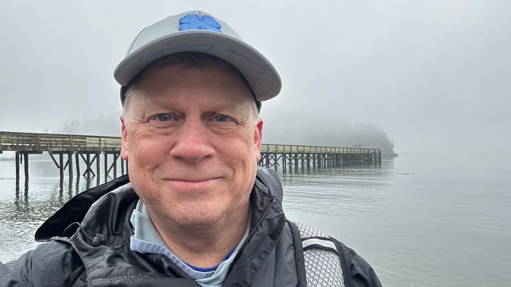 The day began with a soft glow developing behind the overcast skies, hinting at the beauty that lay ahead on my hike along Bowman Bay Trail, just north of Deception Pass. I arrived at Rosario Beach just before dawn, parking off the pavement near the closed entrance gates, as it was too early for access. The air was damp and crisp, hovering around 48 degrees, with a thick fog enveloping the landscape, creating an ethereal atmosphere. As I laced up my boots and pulled out my rain jacket, I felt a mix of excitement and trepidation. The trail called me forward, a narrow path leading into the unknown, where I could hear the gentle symphony of birds greeting the day. The fog shrouded everything in a dreamy haze, making every step feel like an adventure into a hidden world.