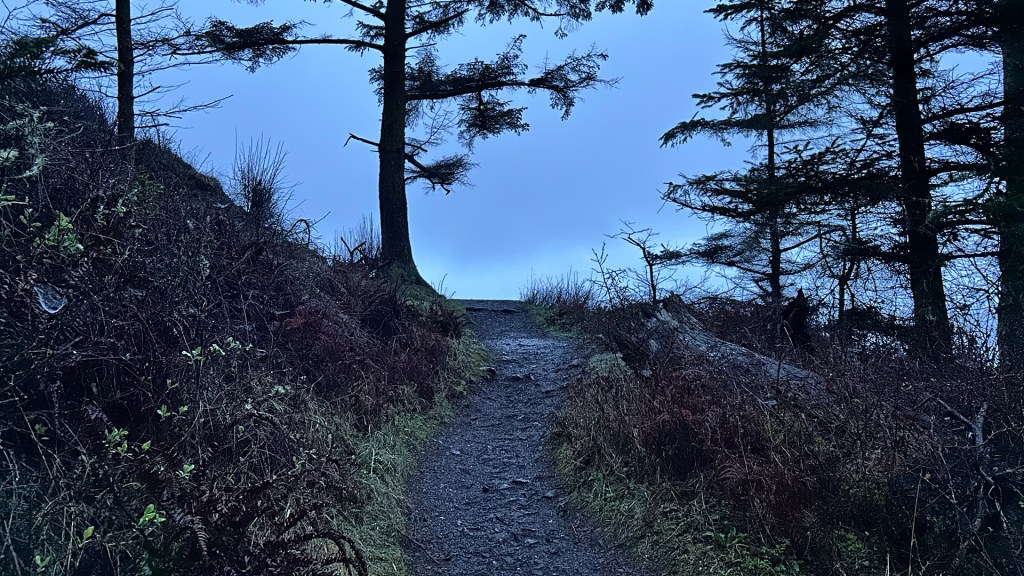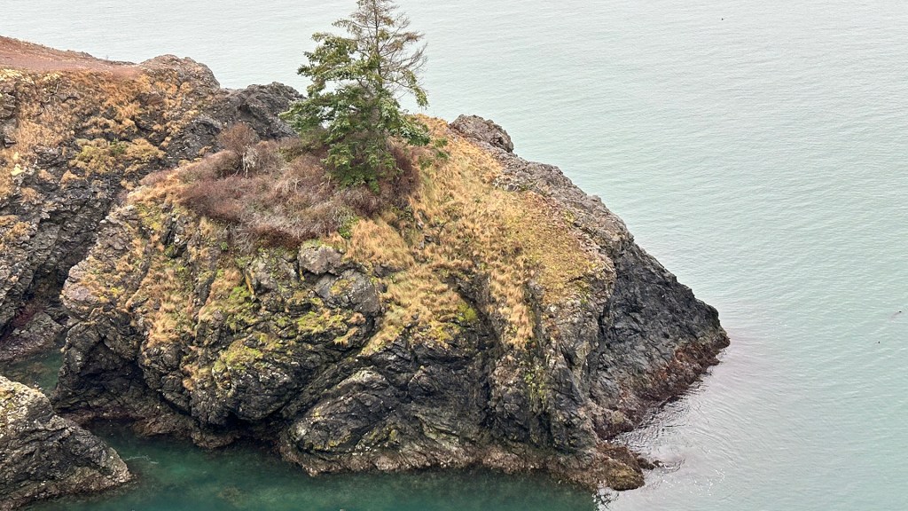 Venturing deeper, the terrain shifted dramatically, from wooded paths to sheer cliffs that dropped into the bay below. The sights were breathtaking. Trees that framed the trail were dripping from water they could no longer hold. They were draped in moss, and beyond I could see large rocks protruding from the sea, like floating islands shrouded in mist. Each bend of the path revealed new landscapes, from sandy beaches to rugged cliffs. At one point, I found myself scaling a rocky hillside cliff, my hands gripping the surface for support. The thrill of that moment filled me with a sense of freedom and a touch of anxiety, maybe more than a touch. I realized how, in this moment, I had to trust my instincts and judgment, a feeling both exhilarating and humbling.