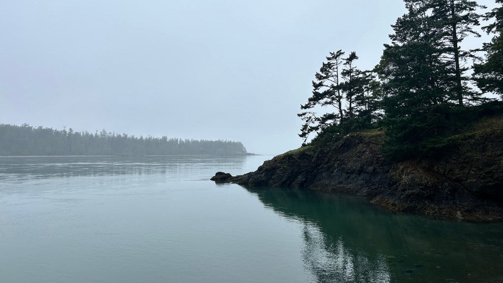 Reaching Lighthouse Point felt like uncovering a hidden gem. The beach was a stark contrast to the rocky shores I’d encountered earlier: smooth, dark wet sand stretched out before me, inviting me to pause and take in the serene beauty. The scent of damp cedar mingled with the earthy aroma of seaweed, a reminder of the powerful connection between land and sea. I listened intently to the waves lapping gently against the shore, the sound almost meditative. It was here I felt a deep appreciation for nature’s artistry, the way light danced on the water, even through the fog. I took a moment to reflect on how far I’d come, both in distance and in spirit.